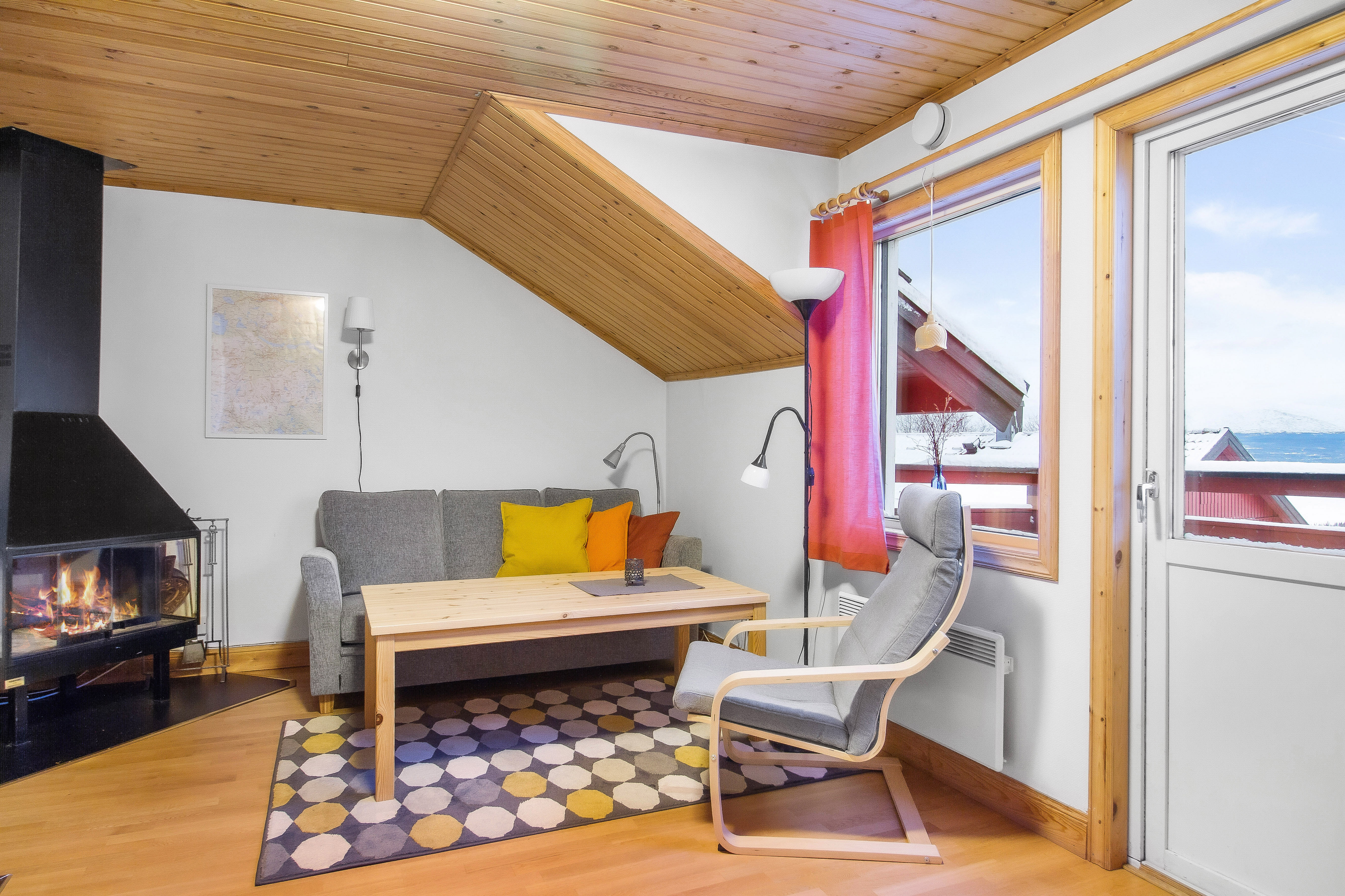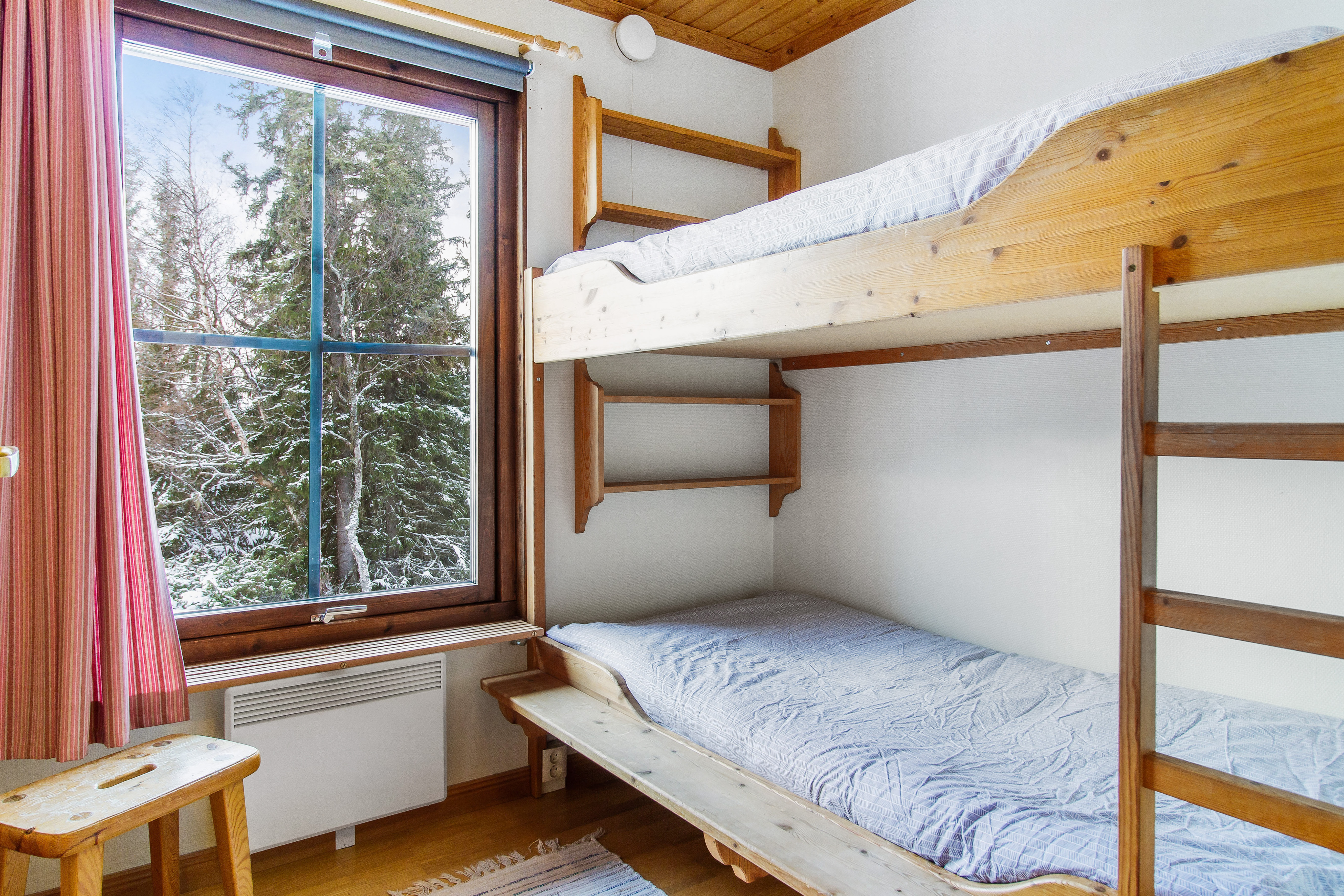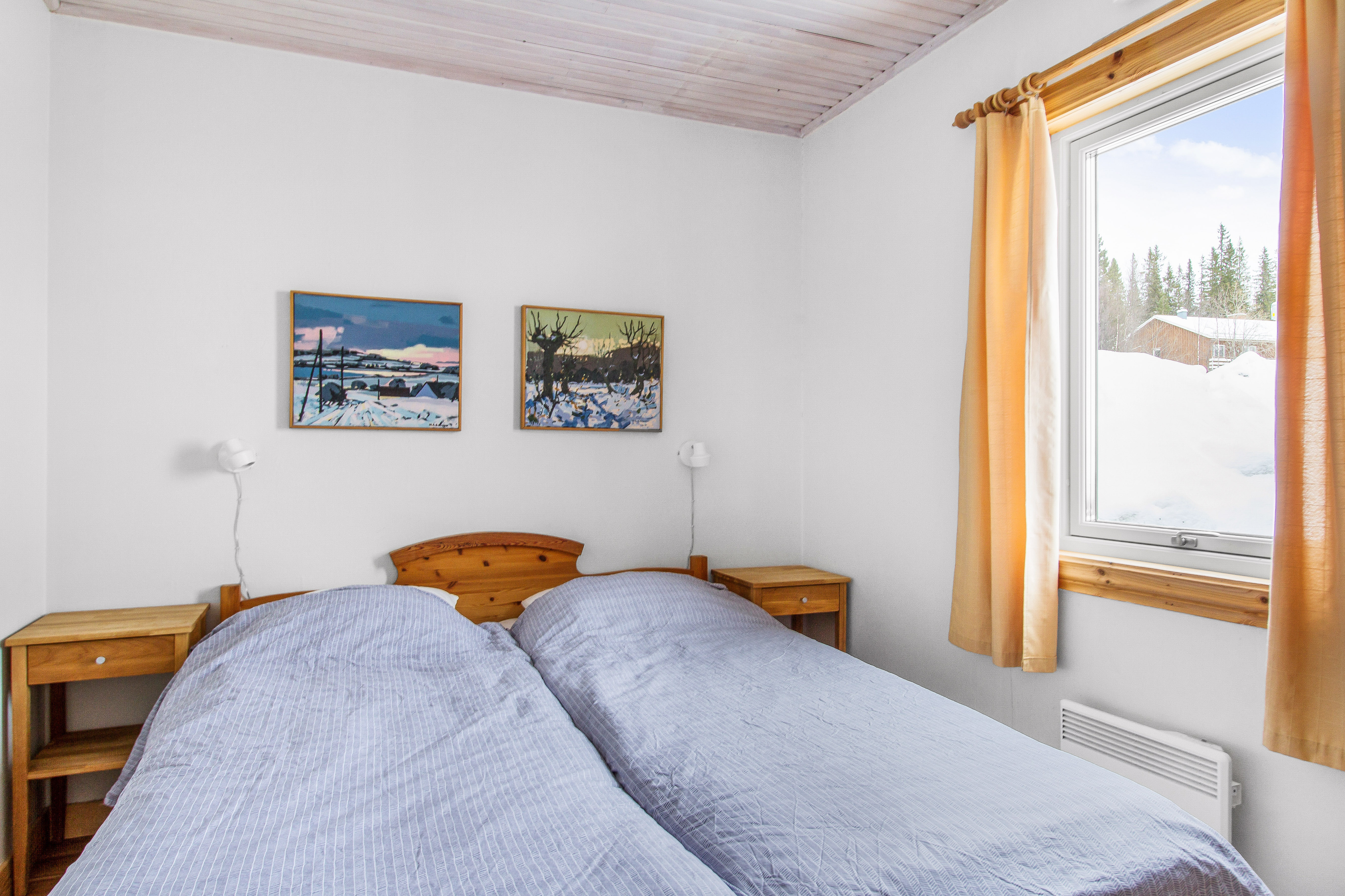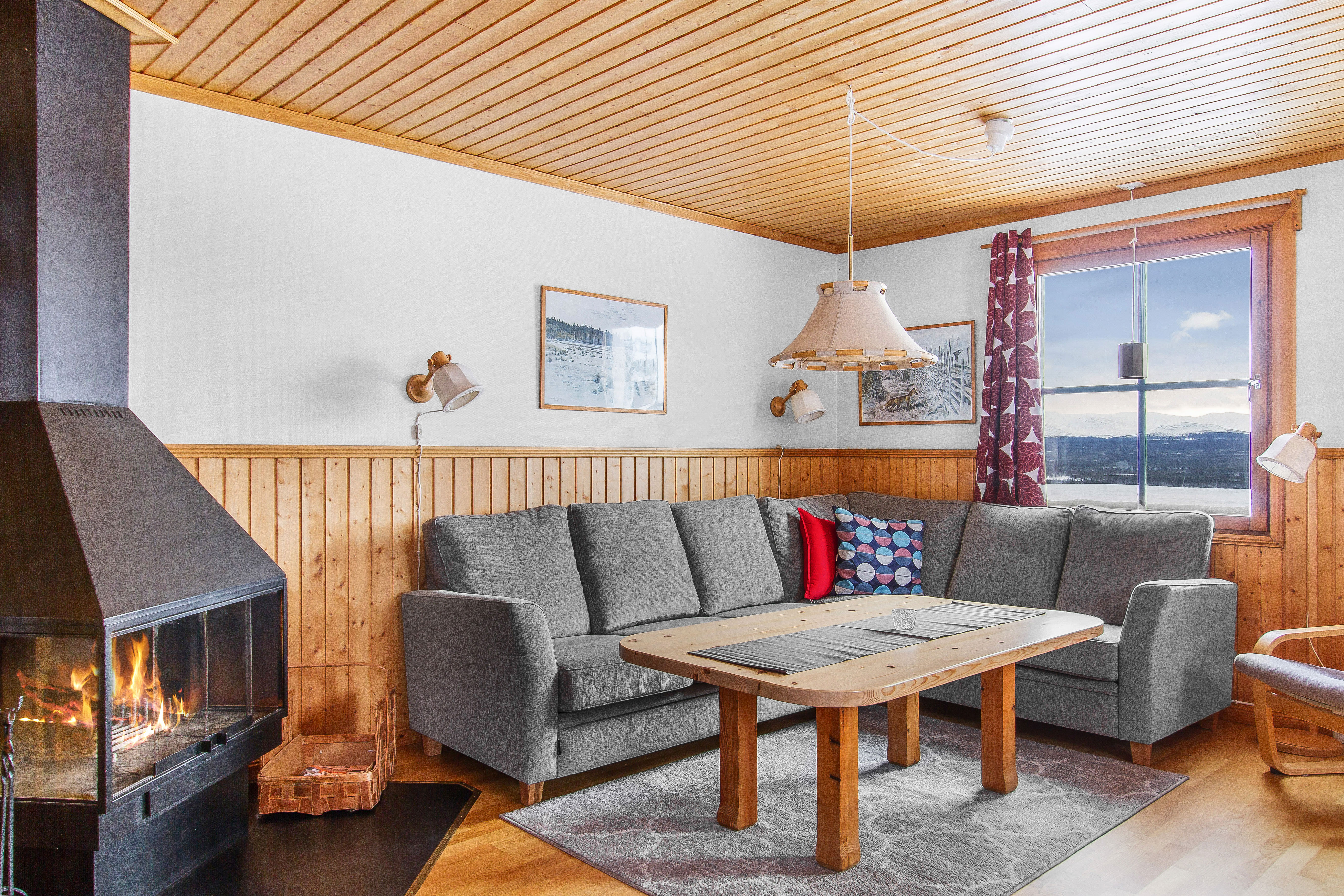 Stuga 10 har sex bäddar. Här finns tre sovrum, kök med eldstad och härlig utsikt i vinkel ut över Ottsjön. En trappa ner finns vardagsrum med öppen spis. Stuga 10 är vår största stuga och har förutom dusch och wc också egen bastu.